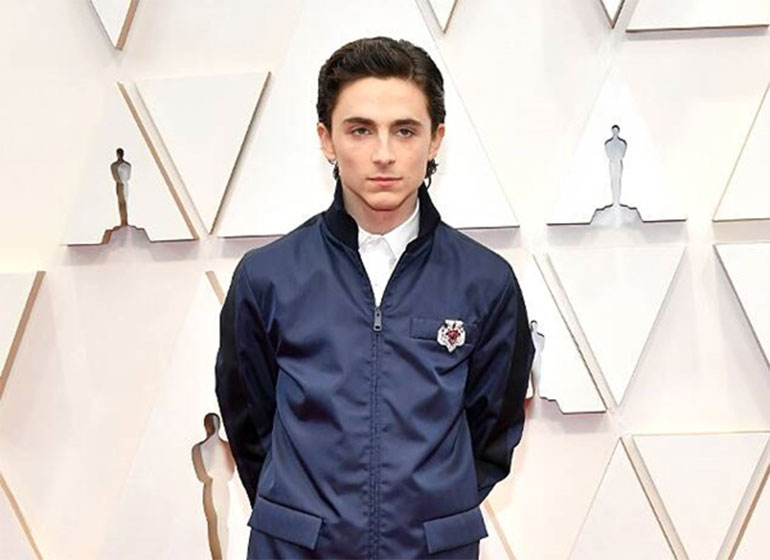 Ο Τιμοτέ Σαλαμέ φόρεσε τη μεγάλη βραδιά του Χόλιγουντ μπλε δημιουργία Prada συνδυασμένη με μία Cartier καρφίτσα vintage με διαμάντια και ρουμπίνια.