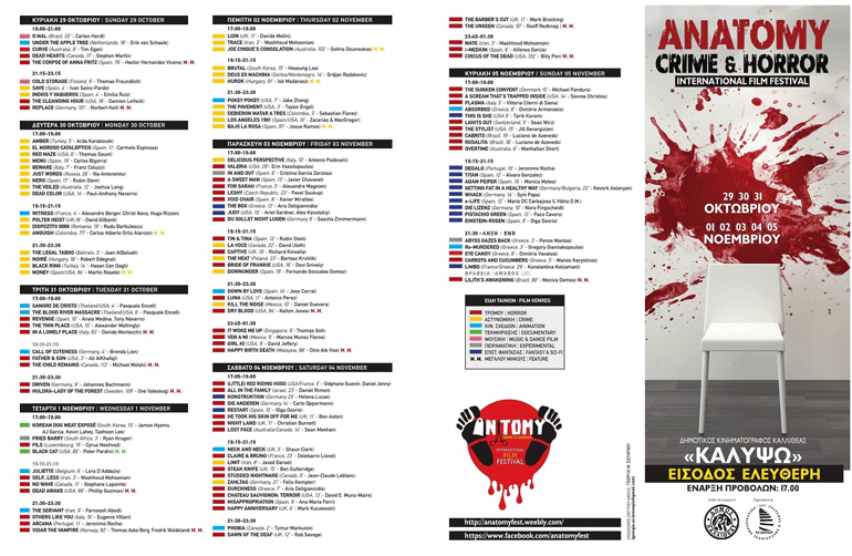 Το πρόγραμμα περιλαμβάνει ταινίες τρόμου (horror), αστυνομικές (crime), φαντασίας και επιστημονικής φαντασίας (fantasy & sci fi), κινουμένων σχεδίων (animation), πειραματικές (experimental), τεκμηρίωσης (documentary) και μουσικές/χορευτικές. Οι περισσότερες από αυτές είναι πανελλαδικές πρεμιέρες (ορισμένες και πανευρωπαϊκές ή παγκόσμιες) και έχουν αποσπάσει πολλά βραβεία σε διεθνή διαγωνιστικά φεστιβάλ.