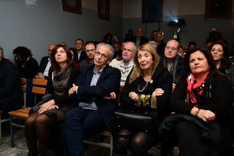 Από την πολιτική ηγεσία παρέστησαν η Αντιπρόεδρος της Βουλής Αναστασία Χριστοδουλοπούλου, ο Υπουργός Μεταναστευτικής Πολιτικής Δημήτρης Βίτσας, ο Αναπληρωτής Υπουργός Παιδείας Κωνσταντίνος Φωτάκης, ο Υφυπουργός Πολιτισμού Κωνσταντίνος Στρατής, ο πρόεδρος της ΔΗΜΑΡ Αθανάσιος Θεοχαρόπουλος, ο Νίκος Παπαναστάσης Αντισυνταγματάρχης ε.α. εκπρόσωπος του ΓΓ της ΚΕ του ΚΚΕ, οι πρώην υπουργοί και βουλευτές Θοδωρής Δρίτσας, Παναγιώτης Κουρουμπλής, Αριστείδης Μπάλτας, Νίκος Τόσκας, Νίκος Φίλης, οι βουλευτές Χαρά Καφαντάρη, Νίκος Μανιός, Ελένη Σταματάκη και Νίκος Συρμαλένιος. Επίσης ο Στέφανος Ληναίος, ο οποίος απηύθυνε και χαιρετισμό, ο συγγραφέας Ευγένιος Τριβιζάς, οι κόρες του Λάκη Σάντα, Γεωργία και Αλεξάνδρα Σάντα, η κόρη του του σκηνοθέτη Παντελή Βούλγαρη Κωνσταντίνα Βούλγαρη, ο παραγωγός της ταινίας Γιάννης Ιακωβίδης και ο υποψήφιος Δήμαρχος Χαϊδαρίου Θεόδωρος Σπηλιόπουλος.