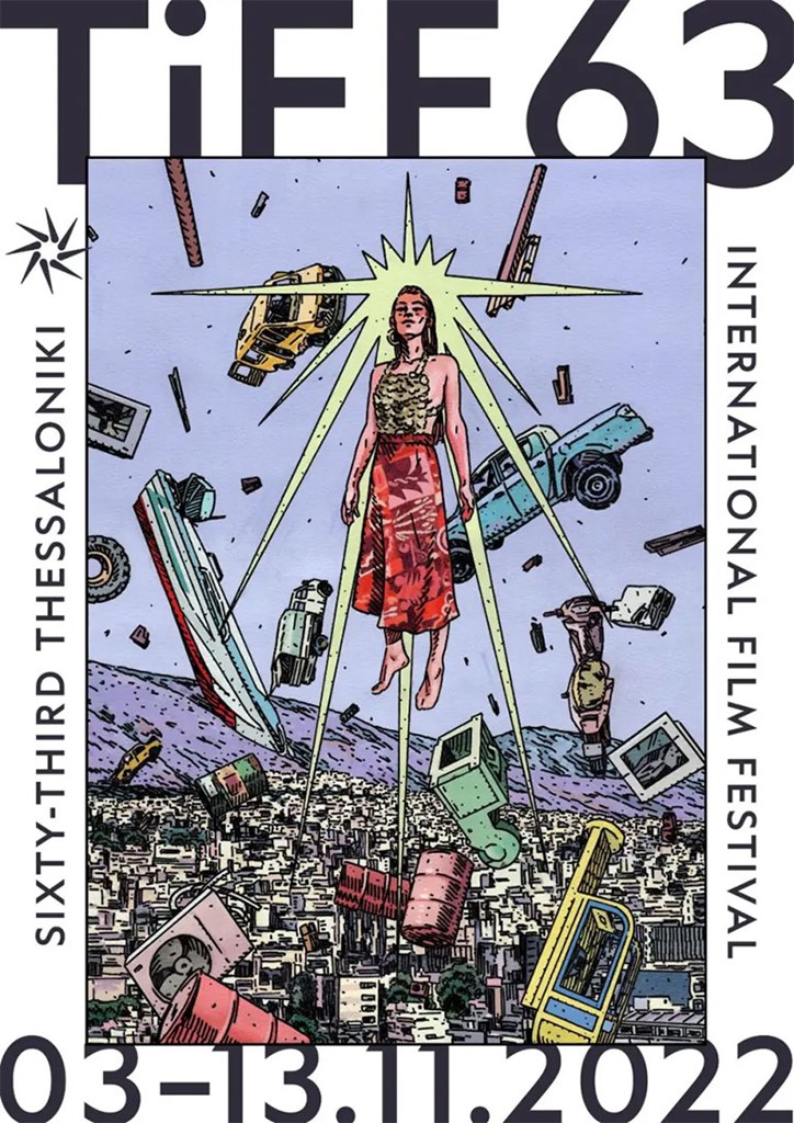 Μία γυναικεία φιγούρα αιωρείται πάνω από την πόλη. Πηγή της ζωής και πυρήνας του κόσμου μας, μαγνητίζει και έλκει όσα μας περιβάλλουν και μας ορίζουν. Το πόστερ του 63ου ΦΚΘ επαναδιαπραγματεύεται την αναπαράσταση της γυναίκας. Είναι η υπερηρωίδα της πραγματικής ζωής, που ξεπερνά και υπερβαίνει τους αμέτρητους ρόλους που της έχουν ανατεθεί. Που απαιτεί από τον καθένα μας και όλους μαζί να τη δούμε επιτέλους μέσα από ένα καινούργιο βλέμμα.