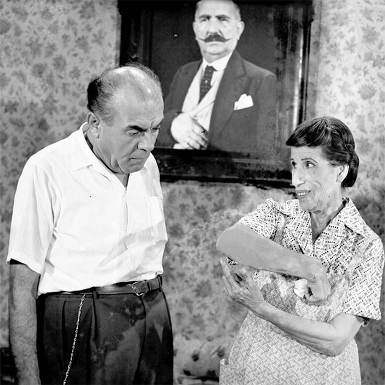 Ποιος δεν θυμάται το πορτρέτο του πατέρα του Μαυρογιαλούρου (Λάμπρου Κωνσταντάρα) στην ταινία «Υπάρχει και φιλότιμο» και φυσικά το κάδρο του μακαρίτη Χαράλαμπου, τον οποίο μνημόνευε η Γεωργία Βασιλειάδου στην ταινία ο Θησαυρός του Μακαρίτη.