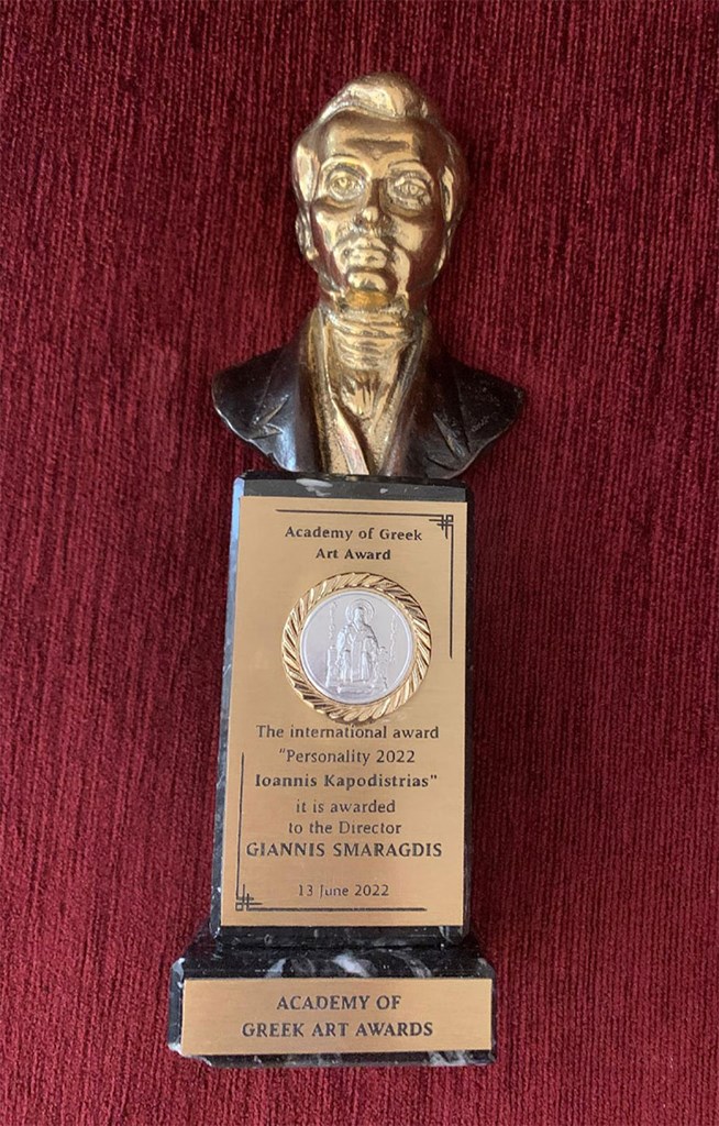 Το βραβείο «Ιωάννης Καποδίστριας» απένειμε φέτος σε μια Ελληνική καλλιτεχνική προσωπικότητα διεθνούς εμβέλειας η Ακαδημία Ελληνικών Βραβείων Τέχνης που με το έργο του προβάλλει τις φωτεινές Ελληνικές αξίες.