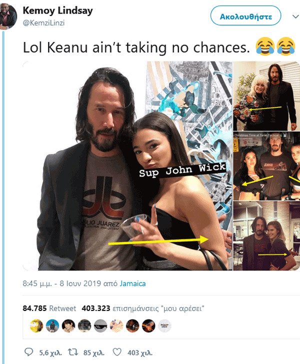 Στις 9 Ιουνίου χρήστης των social media δημοσίευσε στο Twitter ένα κολάζ φωτογραφιών με τον ηθοποιό να στέκεται δίπλα σε γυναίκες για να φωτογραφηθεί και παρατήρησε ότι ο πρωταγωνιστής της κινηματογραφικής σειράς «John Wick» στην πραγματικότητα δεν τις αγγίζει στην πλάτη ή στους ώμους όταν ποζάρει.