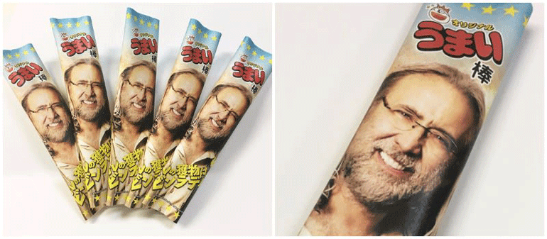 Συνήθως στο περιτύλιγμα απεικονίζονται χαρακτήρες κινουμένων σχεδίων αλλά για να προωθηθεί η νέα ταινία του Κέιτζ η συσκευασία του σνακ θα φέρει το χαμογελαστό πρόσωπο του ηθοποιού.