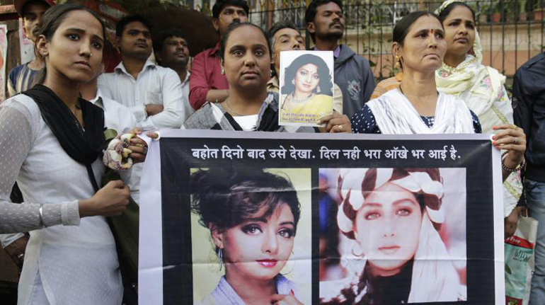 Οι θαυμαστές της Σρίντεβι κρατούσαν τριαντάφυλλα ή φωτογραφίες της, ορισμένοι ταξίδεψαν εκατοντάδες χιλιόμετρα για τον αποχαιρετισμό αυτό, ενώ μεγάλη δύναμη ανδρών ασφαλείας επέβλεπε για την τήρηση της τάξης.