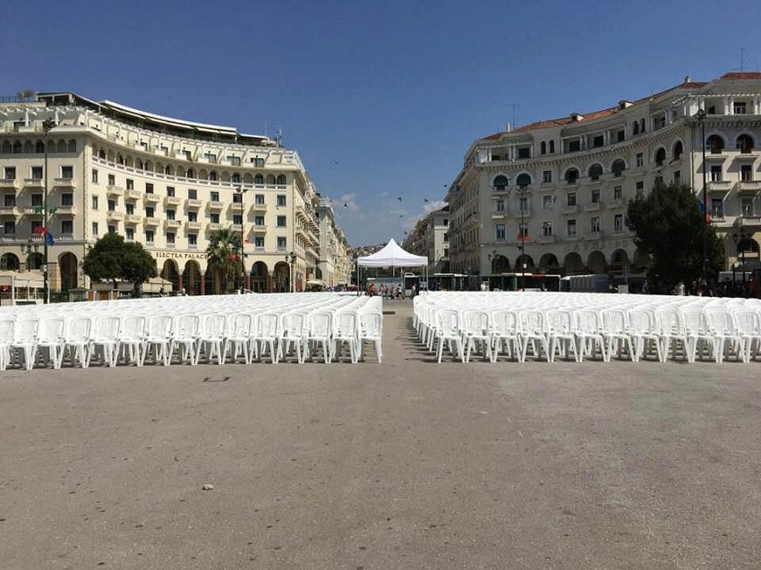 Όλα είναι έτοιμα για το θερινό σινεμά, που θα αναβιώσει στο κέντρο της Θεσσαλονίκης από το πρόγραμμα «Δημιουργική Ευρώπη – MEDIA», με τις καρέκλες να έχουν ήδη στηθεί.