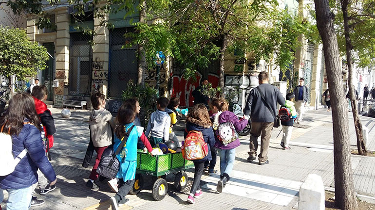 Την ίδια στιγμή, οι εξορμήσεις στην πόλη ήταν κομμάτι της σχολικής ρουτίνας, ενταγμένες στο σχολικό πρόγραμμα. «Έβγαιναν δηλαδή από το σχολείο σχεδόν κάθε εβδομάδα γύρω από το καρότσι – βιβλιοθήκη τους για να ανακαλύψουν την πόλη. Επισκέπτονταν τα σπίτια συγγραφέων, έπαιζαν και φύτευαν στο πάρκο Ναυαρίνου, κολλούσαν τα αφισάκια τους, έκαναν στένσιλ, έπαιζαν ποδόσφαιρο στην αυλή του Πολυτεχνείου. Λίγους μήνες μετά πήρα την απόφαση να φτιάξω ένα ντοκιμαντέρ για αυτήν την τάξη και αυτόν τον δάσκαλο που να περιγράφει την όμορφη σχέση που είχε δημιουργηθεί μεταξύ τους», σημειώνει η Σοφία Λιούλια, που θα ήθελε μέσα από το πρώτο αυτό ντοκιμαντέρ της «να φανεί πως υπάρχει μια άλλη σχολική πραγματικότητα, που μπορεί να υλοποιηθεί σε ένα δημόσιο σχολείο και μάλιστα σε τάξεις όπως αυτή που ακολουθεί η ταινία, όπου τα παιδιά έχουν μεταναστευτικό και προσφυγικό υπόβαθρο. Υπάρχει η ανάγκη μίας πιο διευρυμένης πρόσληψης του σχολικού χώρου που δεν περιορίζεται στη σχολική αίθουσα αλλά συμπεριλαμβάνει και τη γειτονιά με όλους τους πόρους της (ανθρώπινους, πολιτιστικούς, φυσικούς). Το σχολείο μέσω τέτοιων εγχειρημάτων από-ιδρυματοποιείται και ανοίγει τους ορίζοντές του στην πραγματική ζωή», τονίζει.