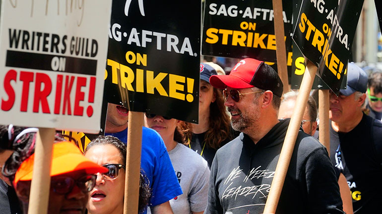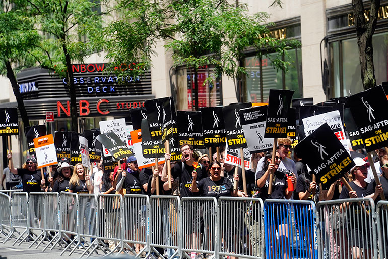 Το συνδικάτο των ηθοποιών SAG-AFTRA –το μεγαλύτερο του Χόλιγουντ με 160.000 μέλη- και το συνδικάτο Αμερικανών σεναριογράφων (Writers Guild of America — WGA) ζητούν αυξήσεις στον βασικό μισθό και residuals (οικονομικές αποζημιώσεις που καταβάλλονται στους ηθοποιούς, σκηνοθέτες και άλλους καλλιτέχνες που μετέχουν σε τηλεοπτικά σόου και ταινίες σε περιπτώσεις επαναλήψεων, αναμετάδοσης, κυκλοφορίας DVD, ή μέσων streaming) στην εποχή του τηλεοπτικού στρίμινγκ (μετάδοση συνεχούς ροής) και διασφαλίσεις πως η εργασία τους δεν θα αντικατασταθεί από την τεχνητή νοημοσύνη (AI).