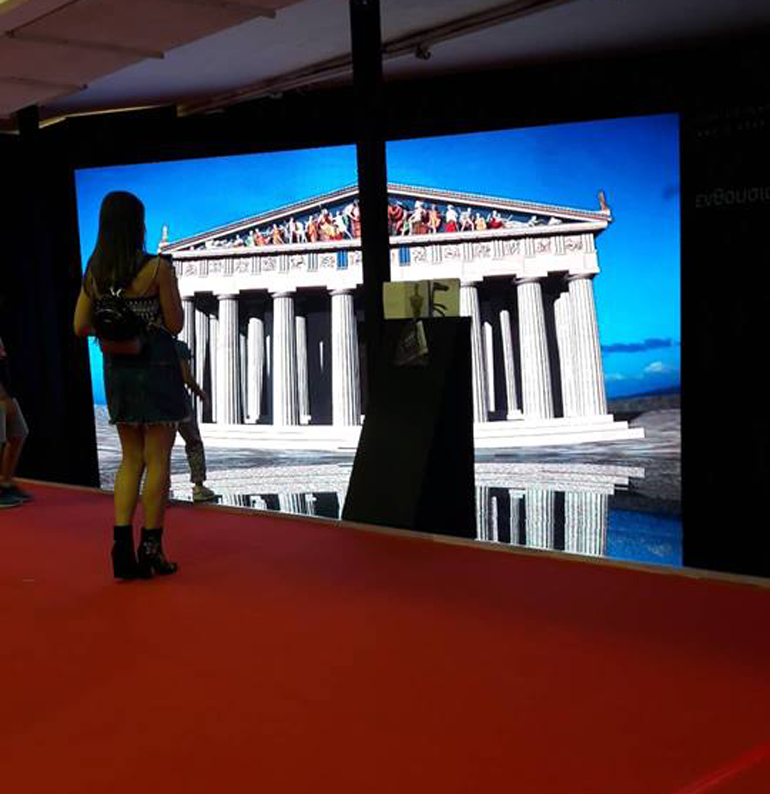 »Στο περίπτερο εδώ βλέπουμε σε τρισδιάστατο βίντεο τον τρόπο κατασκευής του Παρθενώνα, καθώς και πώς ήταν ο Ναός την αρχαία εποχή. Προβάλλοντας έτσι την τεχνολογία των Αρχαίων Ελλήνων, θέλουμε παράλληλα να αξιοποιήσουμε τη δική μας τεχνολογία με σκοπό να μετέχουν πιο εύκολα οι επισκέπτες στον πολιτισμό μας, ώστε να αναπτύξουν μια καλύτερη, πιο αλληλεπιδραστική, σχέση μαζί του».