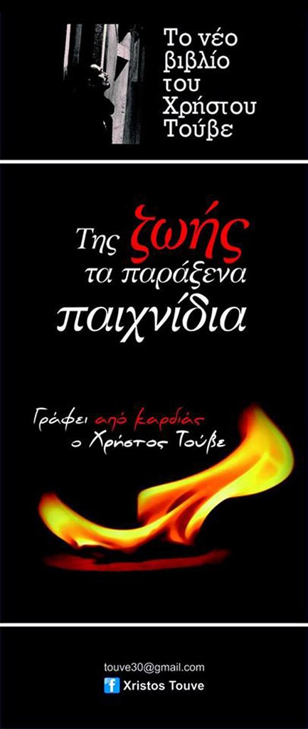 Σε μία εποχή που όλα μοιάζουν κατευθυνόμενα, τολμάς να πας κόντρα. Βρίσκεις κλειστές πόρτες και ο λαβύρινθος μέχρι να βγάλεις άκρη, δεν τελειώνει ποτέ. Αν όμως έχεις οδηγούς το ταλέντο σου, την πίστη, την αισιοδοξία και το κυριότερο την αντίληψη ν’ αλλάζεις τον τρόπο που θέλεις να βλέπεις τη ζωή σου, τίποτα δεν μοιάζει δύσκολο. Το project αυτό-έκδοση (του βιβλίου μου) σήμερα βρίσκεται στον 16ο μήνα του και οδεύει προς την Γ’ έκδοση με τη βοήθεια του Γιάννη Γαβαλά (σύμβουλος βιβλίου που έχει συνεργαστεί με Ρίτσο, Καββαδία και εκτίμησε απίστευτα τη γραφή μου), οι πόρτες ανοίγουν πιο εύκολα, η επίσημη σελίδα μου στο Facebook σαν Συγγραφέας (Xristos Touve) έχει σχεδόν 15.000 άτομα και σε δύο εβδομάδες (από σήμερα) μέσω του παγκόσμιου site Αmazon θα κυκλοφορεί σε 63 χώρες του εξωτερικού για να μπορούν να το προμηθευτούν οι Έλληνες ομογενείς. Το σημερινό δύσκολο είναι το εύκολο αύριο, αρκεί να γνωρίζεις τον εαυτό σου. Ο Ρόμπιν Σάρμα σ’ ένα βιβλίο του, έλεγε ότι αν βρεις τη συνοχή του εαυτού σου, βάζεις σε τάξη όλο τον κόσμο και συμφωνώ.