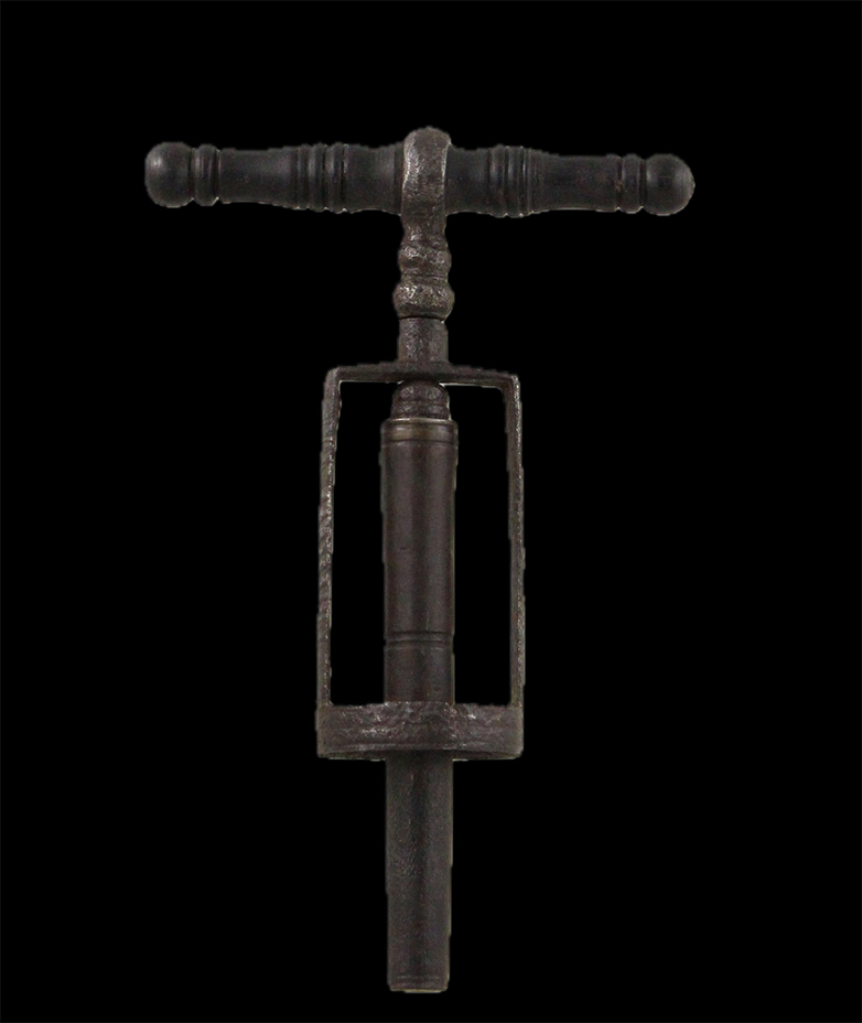 Ξεχωριστό είναι και το ανοιχτήρι αυτοέλξης (Αγγλία, π. 1780), με σταθερό πλαίσιο, που έρχεται να προστεθεί στην ήδη πλούσια συλλογή με ανοιχτήρια του Μουσείο. Πρόκειται για πρώιμο δείγμα μηχανικού ανοιχτηριού, με ξύλινη τορνευτή λαβή και κοχλία του Αρχιμήδη. Οι δύο κολώνες του πλαισίου είναι διακοσμημένες με διαγώνιες εγχαράξεις.