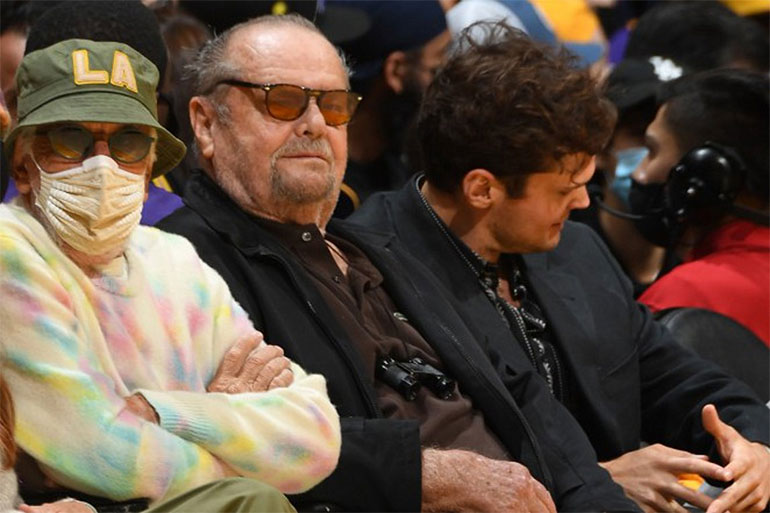 Ο 84χρονος Νίκολσον, χαμογελαστός απόλαυσε τον αγώνα μεταξύ των Λος Άντζελες Λέικερς και των Γκόλντεν Στέιτ Ουόριορς μαζί με τον γιο του, τον ηθοποιό Ρέι στο Staples Center.