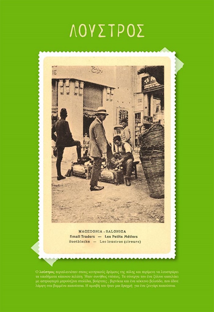 Το φωτογραφικό υλικό με εικόνες από τις αγορές της πόλης και από χαρακτηριστικά αντικείμενα που χρησιμοποιούσαν οι επαγγελματίες της εποχής, συνοδεύεται από το κείμενο του επιμελητή Νίκου Μαραντζίδη, καθώς και από αποσπάσματα κειμένων λογοτεχνών και αρχιτεκτόνων σχετικά με το επαγγελματικό τοπίο της πόλης.