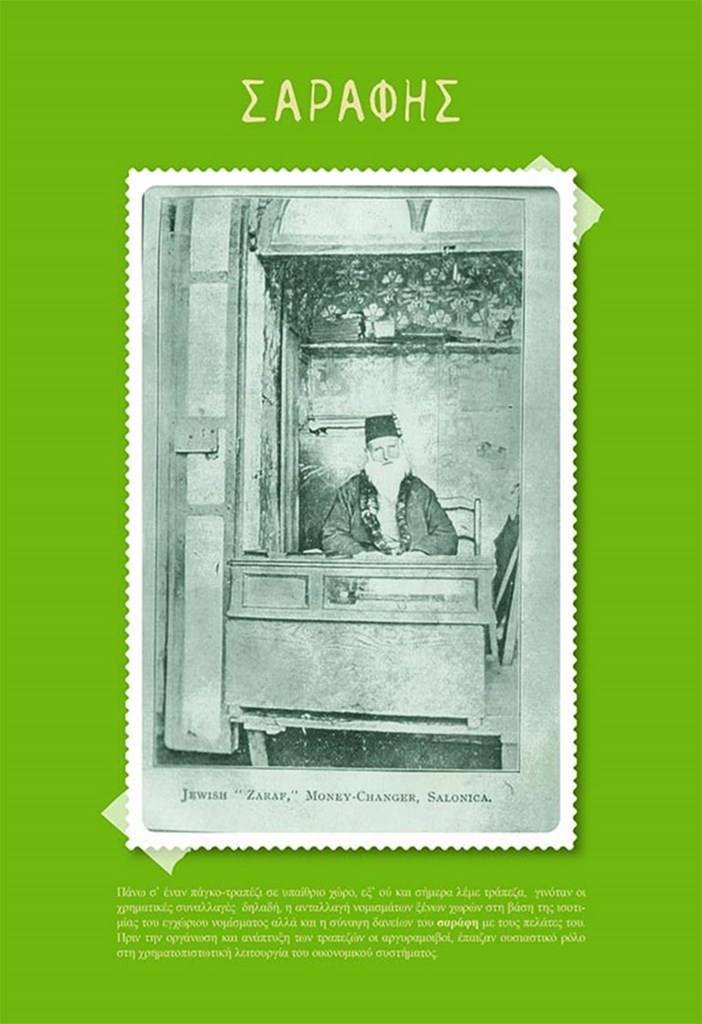 «Στα λαϊκά επαγγέλματα του πρώτου μισού του 19ου αιώνα στη Θεσσαλονίκη θα μπορούσαμε να εντάξουμε τα χειρωνακτικά: τους εργάτες οικοδομών, υπηρέτες, νερουλάδες, βαρελοποιούς πηγαδάδες, αγωγιάτες, αχθοφόρους, αμαξάδες, ιπποκόμους (κυρίως σλαβικής καταγωγής) και κτίστες», αναφέρει ο επιμελητής της έκθεσης Νίκος Μαραντζίδης, ο οποίος κατηγοριοποιεί τα επαγγέλματα ανάλογα και με τις εθνότητες.
