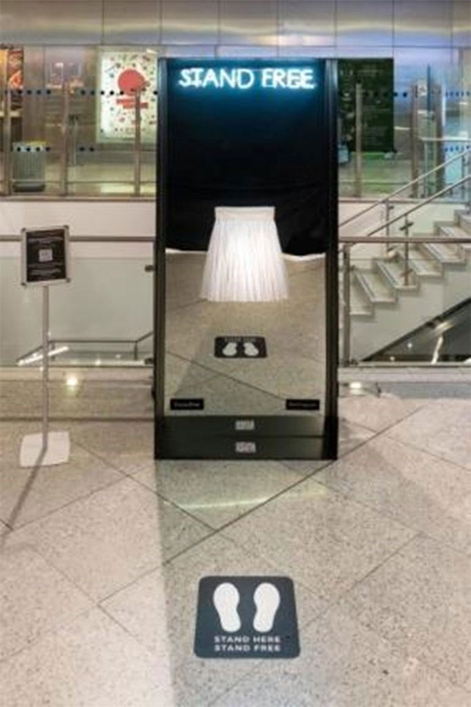 Stand Free (ή μία Φουστανέλα),το διαδραστικό installation της εικαστικού Μαρίας Φραγκουδάκη, φιλοξενείται στον χώρο του αεροδρομίου της Αθήνας έως τον Οκτώβριο του 2021.