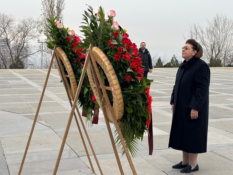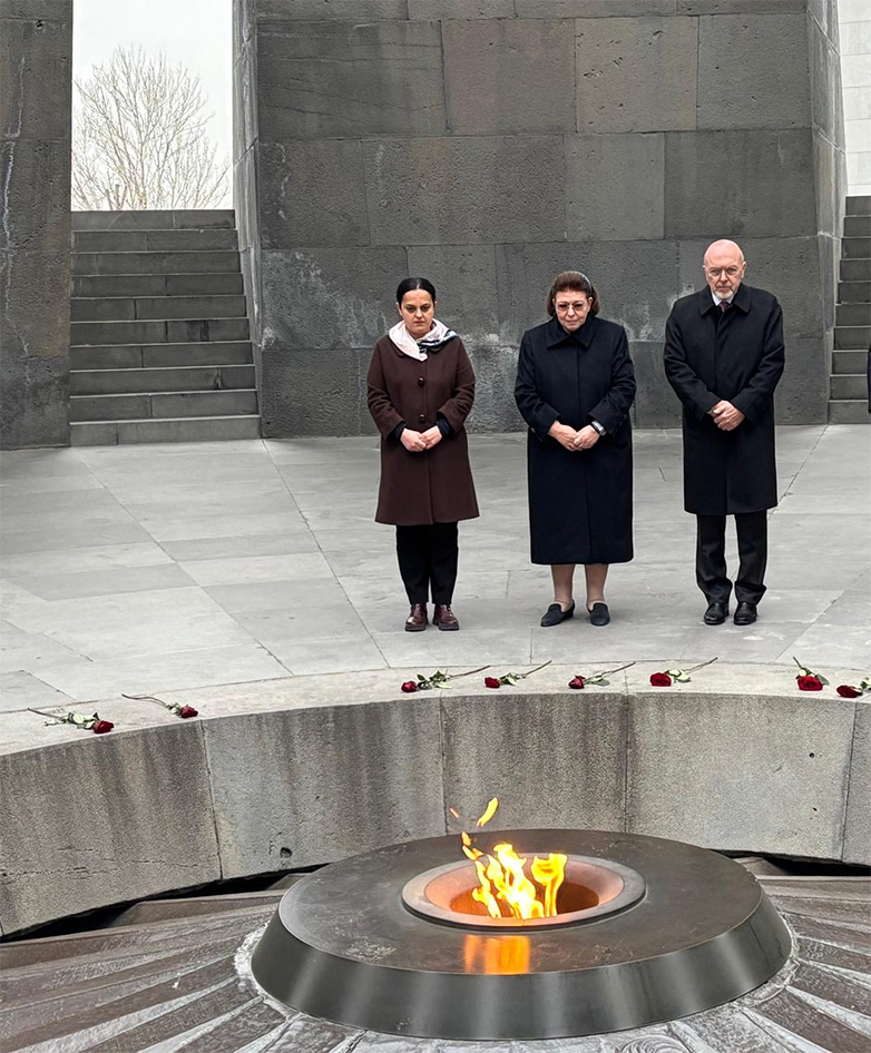 Στη συνέχεια η Λίνα Μενδώνη ξεναγήθηκε στο Μουσείο Αρμένικης Γενοκτονίας και κατέθεσε στεφάνι στο Μνημείο μαζί με τον Υφυπουργό Εξωτερικών Κώστα Φραγκογιάννη, ο οποίος επισκέπτεται την Αρμενία για πολιτικές διαβουλεύσεις.