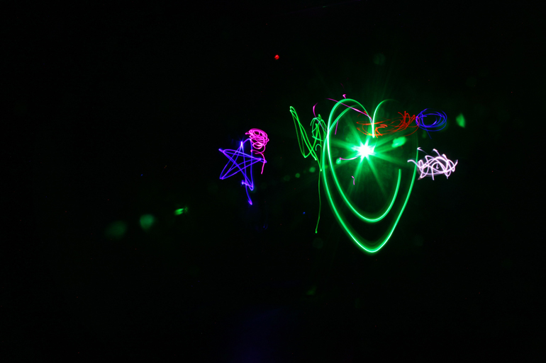 Στο δεύτερο μέρος, τη θέση των μαρκαδόρων θα πάρουν χρωματιστοί φακοί. Οι συμμετέχοντες θα μάθουν την τεχνική του στοπ καρέ ζωγραφίζοντας με φακούς μέσα στον χώρο του εργαστηρίου. Χρησιμοποιώντας φακούς με διαφορετικά χρώματα, θα φανταστούν και θα δημιουργήσουν σχήματα και σιλουέτες που θα πάρουν ζωή και θα αρχίσουν να κινούνται μέσα στο χώρο.