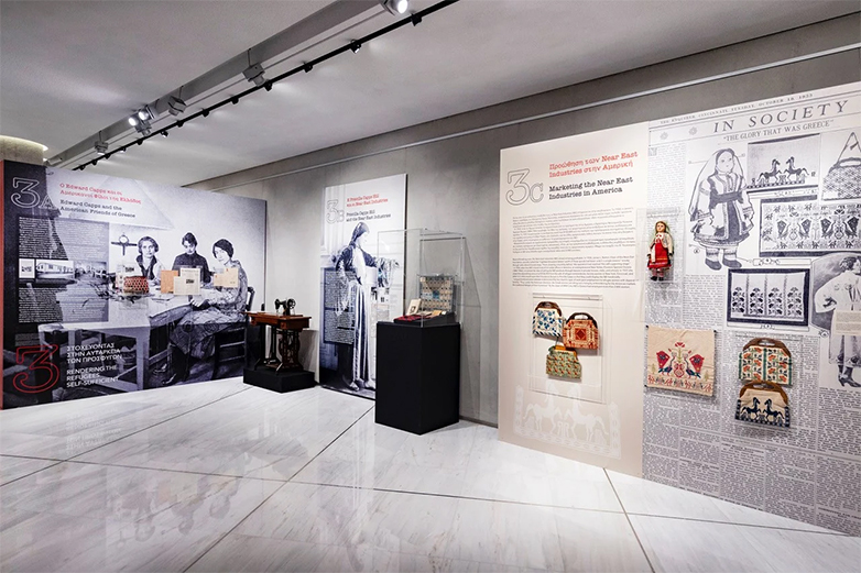 Η έκθεση, σχεδιασμένη σκηνογραφικά από την ομάδα της Μικρής Άρκτου (Βιβή Γερολυμάτου και Ανδρέα Γεωργιάδη) αναδεικνύει επιστολές, επίσημα έγγραφα, σπάνιες εκδόσεις, φωτογραφίες, αντικείμενα, αφίσες, εφημερίδες, ταινίες μικρού μήκους και χειροτεχνήματα. Οι θησαυροί αυτοί, που προέρχονται από τις πλούσιες συλλογές της Αμερικανικής Σχολής Κλασικών Σπουδών στην Αθήνα, αλλά και από διάφορα ιδρύματα, παρουσιάζονται εδώ για πρώτη φορά, υφαίνοντας μια συναρπαστική αφήγηση με ιδιαίτερη σημασία, χωρισμένη σε έξι μεγάλες ενότητες.