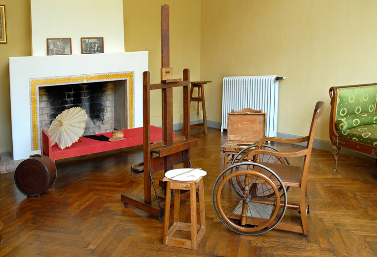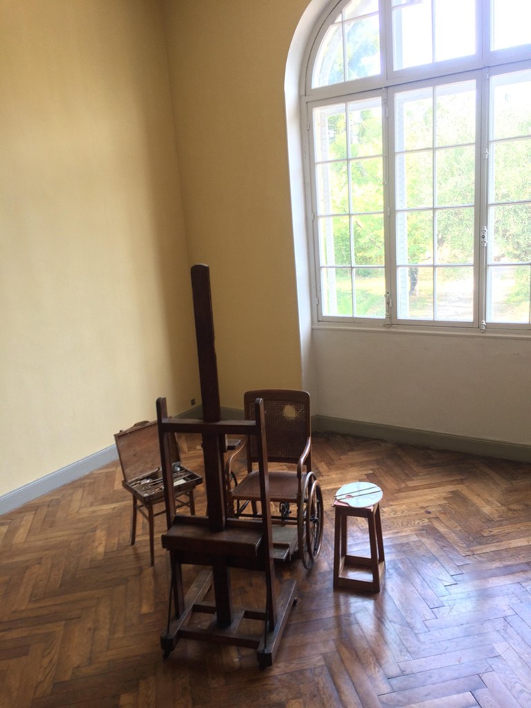 Ο χώρος που περνούσε το μεγαλύτερο μέρος της ημέρας του και δημιούργησε πολλά από τα αριστουργήματά του, βρίσκεται στον πρώτο όροφο. Εκεί κυριαρχεί το τζάκι κι απέναντί του, στην μέση του δωματίου, έχει παραμείνει μπροστά από το καβαλέτο, το ξύλινο αναπηρικό καροτσάκι του Ρενουάρ και τριγύρω τα εργαλεία του. Μέχρι και τα χρώματα παραμένουν άθικτα πάνω στην τελευταία του παλέτα!