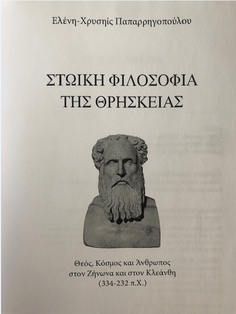 «Στωική Φιλοσοφία της Θρησκείας», ο τίτλος που φέρει το βιβλίο της Ελένης – Χρυσηίδας Παπαρρηγοπούλου, και οι θέσεις του Ζήνωνα και του Κλεάνθη για τον Θεό, τον Κόσμο και τον Άνθρωπο, το θέμα που πραγματεύεται.