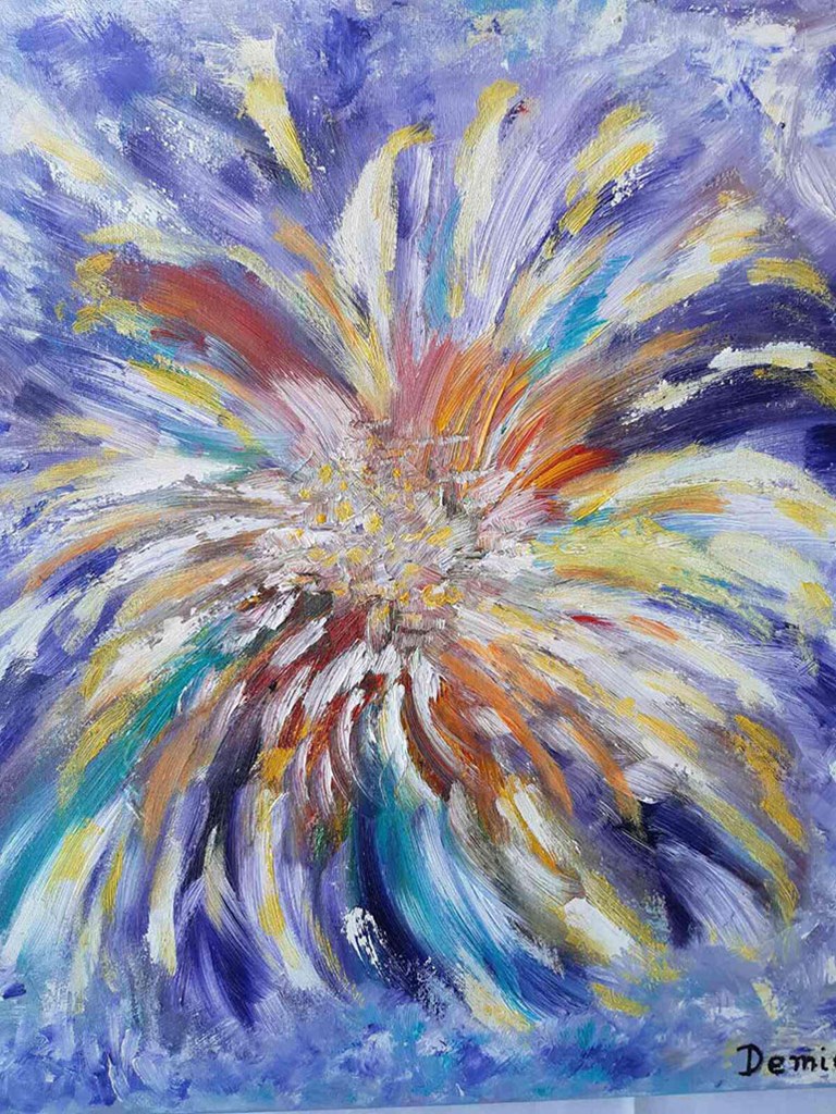 Η δουλειά της εδώ και χρόνια έχει πάρει αφηρημένη μορφή που συνήθως συμβολίζει συναισθήματα ή και θέματα που απασχολούν τον κόσμο μεταμορφωμένα σε χρώματα και σχήματα.