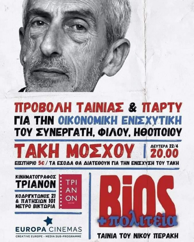 Γι’ αυτό τον λόγο, οι φίλοι του διοργανώνουν μια εκδήλωση που περιλαμβάνει προβολή ταινίας και πάρτι που θα γίνει τη Δευτέρα στις 22 Απριλίου στον κινηματογράφο «Τριανόν».