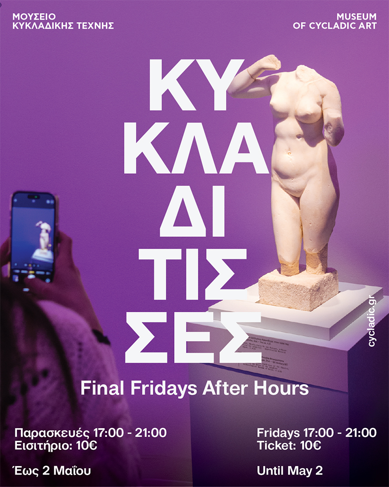 Με διεύρυνση ωραρίου τις Παρασκευές το απόγευμα 17.00-21:00 και γενικό εισιτήριο εισόδου 10 ευρώ, ή έκθεση «Κυκλαδίτισσες: Άγνωστες ιστορίες γυναικών των Κυκλάδων» διανύει τον τελευταίο μήνα της πριν ολοκληρωθεί στις 4 Μαΐου, όπως ενημερώνουν οι διοργανωτές.