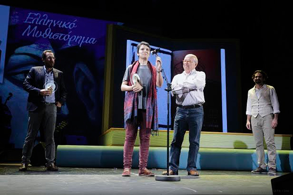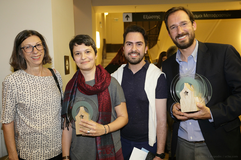 Ο Χρυσόστομος Φουντούλης των εκδόσεων Χρονικό, ο Οδυσσέας Παπασπηλιόπουλος, η Φένια Ρουγκούνη, Γενική Διευθύντρια Ελληνικού Φεστιβάλ και ο Ηλίας Φουντούλης νικητής του βραβείου Ελληνικό Διήγημα.