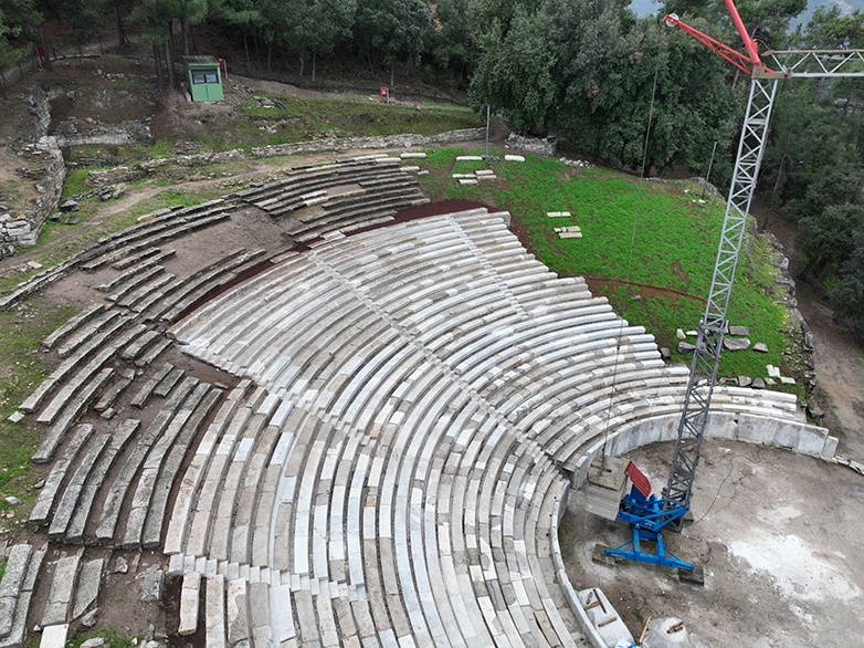 Στο επόμενο χρονικό διάστημα αναμένεται να απομακρυνθεί από το εσωτερικό του αρχαίου θεάτρου ο γερανός, με τη βοήθεια του οποίου έγινε η τοποθέτηση των εδωλίων, ώστε στη συνέχεια να ολοκληρωθεί και το έργο της επίστρωσης της ορχήστρας. Το αρχαίο θέατρο θα είναι εν μέρει επισκέψιμο, κυρίως στο κοίλο του, αφού οι εργασίες θα συνεχίζονται στο εσωτερικό του, ωστόσο οι επισκέπτες θα έχουν την ευκαιρία να θαυμάσουν από κοντά το έργο της αποκατάστασης που έγινε.