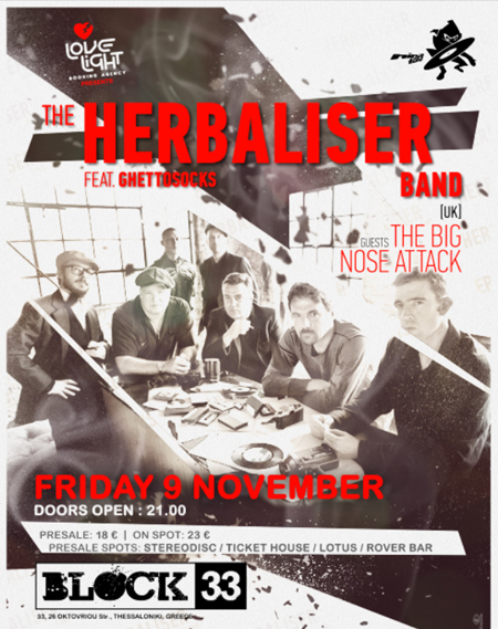 H Lovelight Productions περήφανα παρουσιάζει τρία χρόνια μετά τις εκπληκτικές εμφανίσεις της, σε μια ιδιαίτερη στιγμή για τα συναυλιακά δρώμενα της χώρας μια από τις επιδραστικότερες και πρωτοπόρες μπάντες παγκοσμίως τα τελευταία 15 χρόνια. Ετοιμαστείτε να αφεθείτε στα σίγουρα χέρια των ανεπανάληπτων οραματιστών που ακούνε στο όνομα The Herbaliser και μάλιστα με live full band show αλλά και με καινούργιο δίσκο “There Were Seven”. Εφευρετικοί όσο λίγοι οι The Herbaliser οραματίστηκαν αλλά κυριότερα έκαναν πράξη μια μοναδική συνένωση ήχων, οργάνων, μελωδιών και στυλ. Jazz, Rap και Hip-Hop έγιναν ένα κάτω από τις μαγικές εμπνεύσεις τους. Μπάσο, τύμπανα, πλήκτρα, φλάουτο, σαξόφωνο, τρομπέτα, turntables και πολλά άλλα θα πλημμυρίσουν στις 9 και 10 Νοεμβρίου τα Block 33 και Gagarin 205 αντοίστοιχα παρασέρνοντας μας στο μαγικό κόσμο των αισθήσεων που μόνο οι Herbaliser προσφέρουν! Τη συναυλία στην Αθήνα θα ανοίξουν οι Pad Trio & Elephant Phinix.