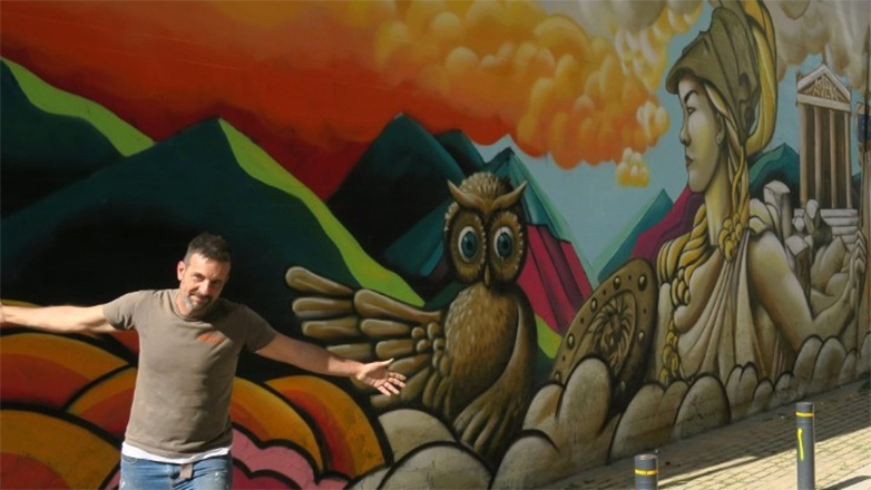 Είναι γραφίστας στο επάγγελμα και ο σύλλογος γονέων του δημοτικού σχολείου, στο οποίο και ο ίδιος πήγαινε πριν από …τέσσερις δεκαετίες, τον κάλεσαν να χρησιμοποιήσει την τέχνη του για να καλύψει ένα αυθαίρετο και όχι καλόγουστο σχέδιο που κάποιοι έκαναν στον τοίχο του σχολείου.