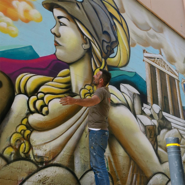 Ο Μίλτος Τσαλικίδης από μικρός ζωγράφιζε, αλλά δεν σπούδασε σε σχολεία Καλών Τεχνών, αν και στο δημοτικό, ως μαθητής της πέμπτης τάξης, έκανε την πρώτη του τοιχογραφία. «Είχα ζωγραφίσει τον τοίχο της τάξης. Ήταν αντιγραφή του έργου του Φασιανού, αλλά δεν θυμάμαι ακριβώς τι ήταν, γιατί πέρασαν από τότε 40 χρόνια», αφηγείται. «Τότε μού ζήτησε ο δάσκαλος να το κάνω, ενώ αυτή τη φορά αποφασίσαμε για το γκράφιτι με τους γονείς των μαθητών και, φυσικά, είχαμε την άδεια της διεύθυνσης του σχολείου. Σκεφτήκαμε να ζωγραφίσω την Αθηνά, την αγαπημένη θεά των αρχαίων μας προγόνων! Η Αθηνά ήταν η θεά της σοφίας και της γνώσης και προστάτιδα κάθε ανθρώπινης τέχνης και κάθε ωφέλιμης απασχόλησης. Μαζί της και η κουκουβάγια. Την Αθηνά την κάναμε σε ασπρόμαυρα χρώματα, αλλά την κουκουβάγια πολύχρωμη, γιατί συμβολίζει τη σοφία, τη γνώση, και όλοι ξέρουμε πως βοήθησε την Αθηνά πνευματικά».