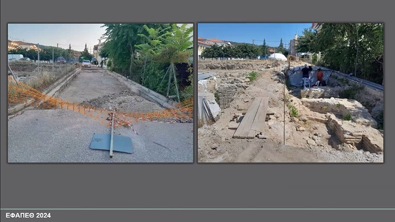 Σύμφωνα με την ανακοίνωση της προϊσταμένης της ΕΦΑ Περιφέρειας Θεσσαλονίκης Μαρίζας Τσιάπαλη και της αρχαιολόγου Αθηνάς Τοκμακίδου στην 37η Επιστημονική Συνάντηση για το αρχαιολογικό έργο στην Μακεδονία και τη Θράκη, κατά τη διάρκεια της νεότερης ανασκαφής, αποκαλύφθηκε ο τοίχος που οριοθετεί τους χώρους της παλιάς ανασκαμμένης έπαυλης στα δυτικά, που διακλαδίζεται προς τα ανατολικά σε μικρότερους κάθετους σε αυτόν, ενώ σώζονται και τρία θυραία ανοίγματα, που αντιστοιχούν στα δύο δυτικά δωμάτια και στη στοά του περιστυλίου.
