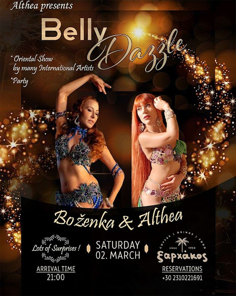 «Με την Boženka έχουμε ετοιμάσει πολλές εκπλήξεις. Αρχικά θα δείτε “δύο συν δύο” χορογραφίες διαφορετικής θεματολογίας, για όλα τα επίπεδα χορευτών, δασκάλων χορού και επαγγελματιών του είδους» εξηγεί, μιλώντας στο Αθηναϊκό/Μακεδονικό Πρακτορείο Ειδήσεων, η διεθνής χορογράφος, oriental dancer και προπονήτρια αραβικών χορών και fusion oriental styles, Althea.