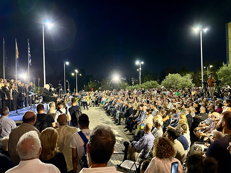 Η πλατεία ήταν γεμάτη» και ο κόσμος παρακολουθούσε τη Φιλαρμονική Ορχήστρα του Δήμου Θεσσαλονίκης και τη Μικτή Χορωδία Θεσσαλονίκης, να παίζουν και να ερμηνεύουν τραγούδια του Διονύση Σαββόπουλου. Σε ένα ρεφρέν, ακούστηκε η φωνή του ίδιου του καλλιτέχνη να τραγουδά «Μην μιλάς άλλο για αγάπη, η αγάπη είναι παντού». Ακολούθησε η εμβληματική «Συννεφούλα», την οποία ο «Νιόνιος από τη Θεσσαλονίκη», τραγούδησε στο κοινό που συγκεντρώθηκε προς τιμήν του στην αυλή του δημαρχείου.