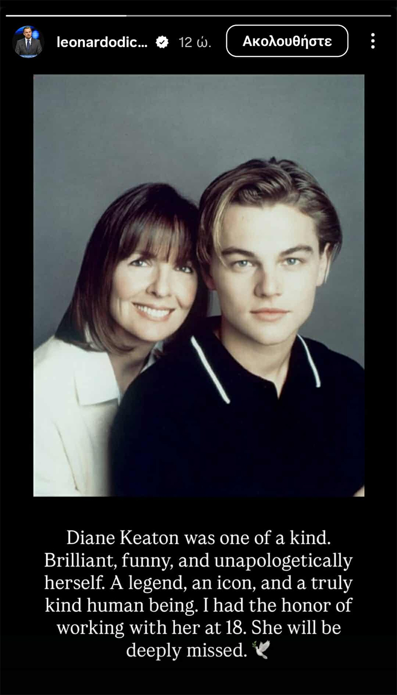 «Η Νταϊάν Κίτον ήταν μοναδική. Λαμπρή, αστεία και αμετανόητα ο εαυτός της», έγραψε.