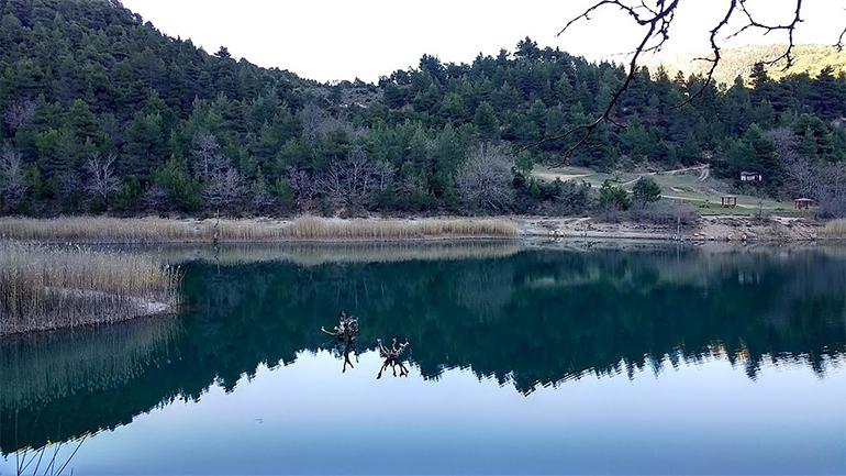 «Κατεβαίνοντας προς τη λίμνη από το “Μέγα Σπήλαιο”, υπάρχει ένα μονοπάτι το οποίο εναλλάσσεται από δάση κεφαλληνιακής ελάτης σε πεύκα, χαλέπιο πεύκη και μαύρη πεύκη. Επίσης υπάρχουν πολλά πλατάνια. Στα διάκενα γύρω από τη λίμνη και τα πλατάνια και τις ιτιές, μπορούμε να βρούμε και διάφορα ενδημικά είδη φυτών τα οποία ο Φορέας Διαχείρισης διαχειρίζεται και προστατεύει. Σημαντικά είναι κάποια ελληνικά ενδημικά όπως είναι μία Centaurea achaia και επίσης ένα είδος της Πελοποννήσου που βρίσκεται στη λίμνη και είναι το Colchicum peloponnesiacum . Επίσης υπάρχουν πολλά αρωματικά και θεραπευτικά φυτά γύρω από τη λίμνη όπως είναι το περίφημο τσάϊ του Χελμού» εξηγεί η περιβαλλοντολόγος στο ΑΠΕ-ΜΠΕ.