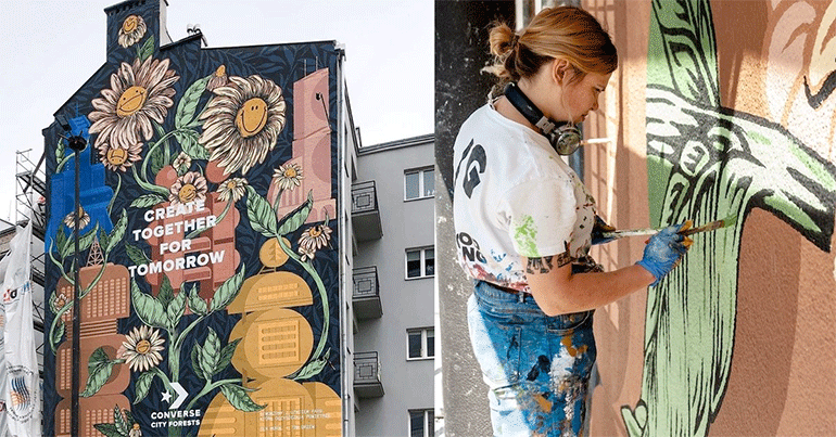 Ο Ryski εστίασε στα αρχιτεκτονικά στοιχεία ενώ ο Polak ανέλαβε τα μοτίβα της φύσης που ρέουν στην όψη του κτηρίου. Συνδυάζοντας τις δεξιότητές τους, κατάφεραν να δημιουργήσουν μια αρμονική και ισόρροπη σύνθεση που απηχεί το σλόγκαν της καμπάνιας: «Create Together for Tomorrow». Το δημόσιο έργο τέχνης εντάσσεται στο πρότζεκτ Converse City Forests και η φωτοκαταλυτική βαφή που χρησιμοποιήθηκε ενεργοποιείται από το φως για να αποσυνθέσει τους ατμοσφαιρικούς ρύπους και να τους μετατρέψει σε ακίνδυνα νιτρικά άλατα, βελτιώνοντας την ποιότητα του αέρα.