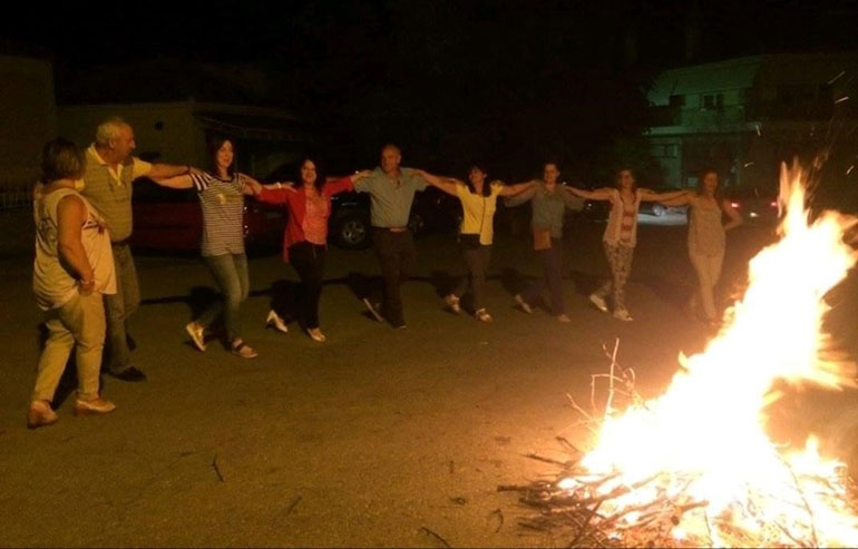 Σύμφωνα με την παράδοση, οι συμμετέχοντες θα ανάψουν φωτιές στην κεντρική πλατεία του χωριού και εκεί θα κάψουν τα μαγιάτικα στεφάνια τους. Μόλις καταλαγιάσει η φωτιά, μικροί και μεγάλοι θα αρχίσουν να πηδάνε πάνω από τις πύρινες στάχτες της, για να έχουν καλή υγεία και καλοτυχία.