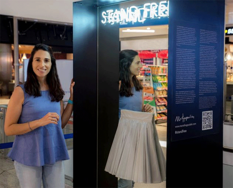 Stand Free (ή μία Φουστανέλα). Το διαδραστικό installation της εικαστικού Μαρίας Φραγκουδάκη, φιλοξενείται στον χώρο του αεροδρομίου της Αθήνας εδώ και λίγες ημέρες και έως τον Οκτώβριο και οφείλει ως καλλιτεχνική δημιουργία την ύπαρξή του στη συγκυρία της επετείου των 200 χρόνων από την Επανάσταση.