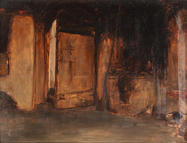 Νικόλαος Γύζης Εσωτερικό με Εστία (λάδι σε hardboard, 24.5 x 33 εκ)