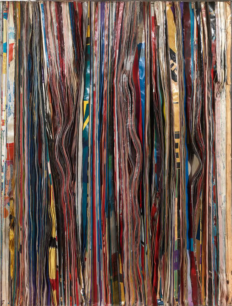 ‘Εργο του 1962, το Affiches Massicotees ανήκει στη μεταβατική περίοδο του καλιτέχνη όπου το αφηρημένο γεωμετρικό στοιχείο συναντά τα χαρτιά περιοδικών (trimmed poster). Είναι η περίοδος όπου ο Pavlos (1930) βρίσκεται ήδη εγκατεστημένος στο Παρίσι και εντυπωσιάζεται από τα μεγέθη και τα χρώματα των αφισών στους Παρισινούς δρόμους και στο μετρό. Ο καλλιτέχνης θα χρησιμοποιήσει το poster paper ως βασικό δομικό υλικό και θα δημιουργήσει έργα που θα καταργήσουν τα σύνορα ανάμεσα στη γλυπτική και τη ζωγραφική καθιστώντας τον ως ένα από τους κυρίαρχους εκπροσώπους του Νέου Ρεαλισμού διεθνώς.