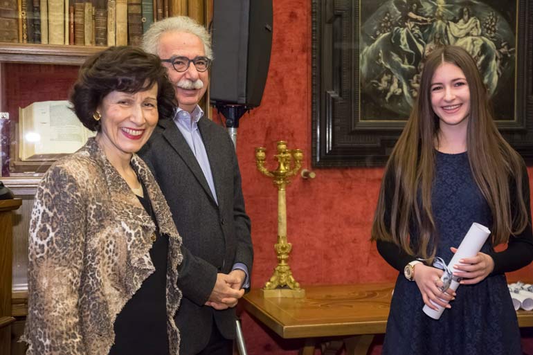 Η Γραμματέας Δ.Σ. του Ιδρύματος Ωνάση κα Μαριάννα Μόσχου και ο Υπουργός Παιδείας κ. Κώστας Γαβρόγλου συγχαίρουν την Ειρήνη Μηλιώρη.