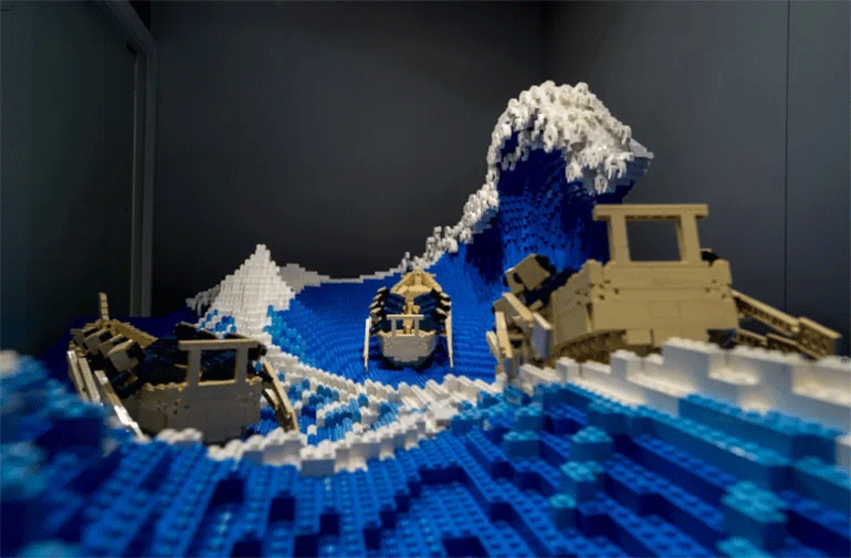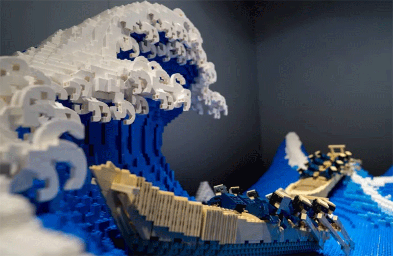 Ένα από τα πλέον αναγνωρίσιμα παγκοσμίως έργα εικαστικών τεχνών είναι το «Τσουνάμι στα ανοιχτά της Καναγκάουα» του Κατσουσίκα Χοκουσάι. Τώρα, ο Ιάπωνας Jumpei Mitsui αναδημιούργησε το «Μεγάλο Κύμα» ως γλυπτό. Σε διάστημα 400 ωρών, συνέθεσε με 50 χιλιάδες κυβάκια της γνωστής δανέζικης εταιρείας παιχνιδιών, σε χρώματα λευκό και μπλε του κοβαλτίου, ένα κύμα που ξεδιπλώνεται και μιμείται τέλεια το πρωτότυπο.