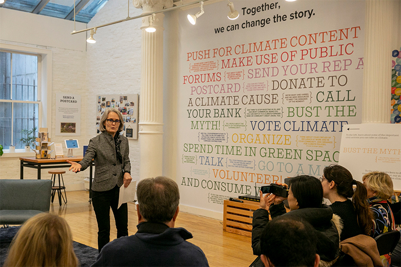 Το Μουσείο Κλίματος διοργανώνει εδώ και έξι χρόνια εκθέσεις σε όλη τη Νέα Υόρκη, οι οποίες έχουν προσελκύσει 150.000 επισκέπτες σε χώρους όπως το Governors Island και το Rockefeller Center. Τα εκθέματά του, έργα διάφορων καλλιτεχνών, μεταξύ άλλων των Mona Chalabi και David Opdyke, αντιμετωπίζουν χωρίς περιστροφές την κλιματική αλλαγή.