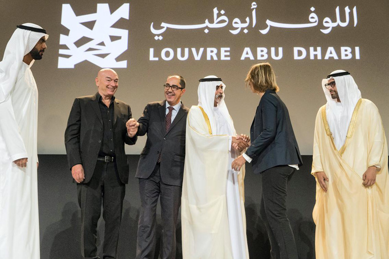 Το έργο είναι το αποτέλεσμα διακυβερνητικής συμφωνίας που υπογράφηκε το 2007 ανάμεσα στο Παρίσι κα το Αμπού Ντάμπι. Διάρκειας 30 ετών, που προβλέπει ότι η Γαλλία θα προσφέρει την εμπειρογνωμοσύνη της, θα δανείσει έργα τέχνης και θα οργανώσει προσωρινές εκθέσεις έναντι ενός δισεκατομμυρίου ευρώ. Στο σύνολο αυτό, μόνο η παραχώρηση του ονόματος του Λούβρου έως το 2037 θα αποφέρει στο παρισινό μουσείο 400 εκατομμύρια ευρώ.