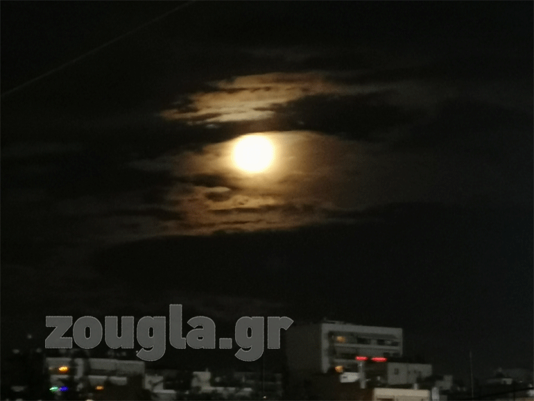 Το ολόγιομο φεγγάρι έκανε την εμφάνισή του στον αττικό ουρανό μαγεύοντας μικρούς και μεγάλους.