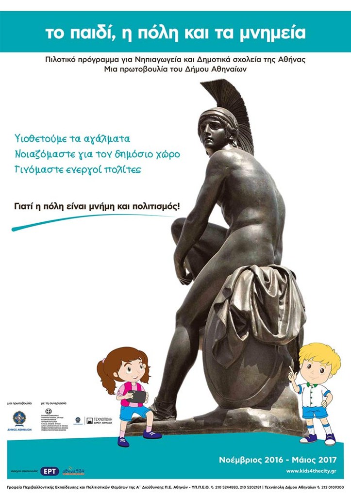 Στόχος του προγράμματος «Το παιδί, η πόλη και τα μνημεία» είναι να καλλιεργήσει την αγάπη στην πόλη, τον σεβασμό στον δημόσιο χώρο μαθαίνοντας στα παιδιά την ιστορία της Αθήνας με αφορμή τα αγάλματα και τα μνημεία της, αλλά και τα ονόματα των δρόμων.