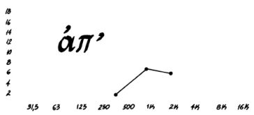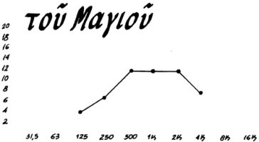 Τοῦ Μαγιοῦ. Νότα πολὺ πιὸ σιγανή· 12 db. Καὶ βαρύτερη· 4Κ. Τὸ διάγραμμα ὅμως ἁπλωτό.