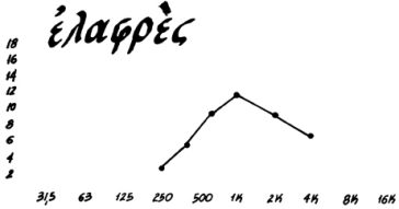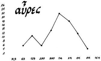 ῞Οπως βλέπετε ἡ ἔνταση τῆς λέξεως ἔφτασε τὰ 24 db. Τὸ δὲ ὕψος συχνότητας ξεπέρασε τοὺς 8K (χιλιοκύκλους). ῎Εχουμε δηλαδὴ μιὰ νότα —ἄς ποῦμε— ψηλὴ καὶ δυνατή.